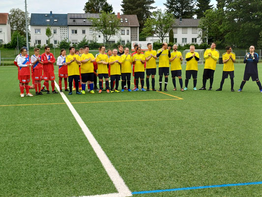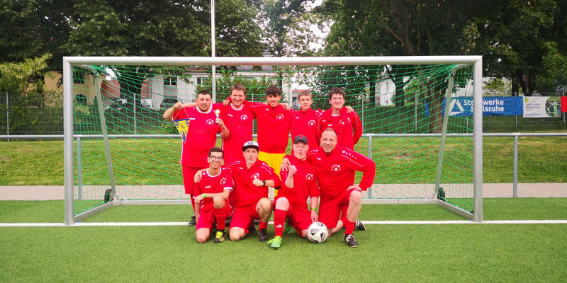 Insgesamt spielten vier Teams im Jeder-gegen-Jeden-Modus. Somit durfte sich unser Team mit dem Team HWK (Hagsfelder Werkstätten), den Gastgebern Phönix 17 (SG Karlsruhe) und dem Team TSV Musberg (Raum Stuttgart) messen. Jede Partie war mit 20 Minuten Spielzeit angesetzt, gespielt wurde auf Kunstrasen mit 6 Feldspielern und einem Torwart. Es entwickelten sich spannende Spiele, bei denen zur Freude der Zuschauer auch jede Menge Tore fielen.