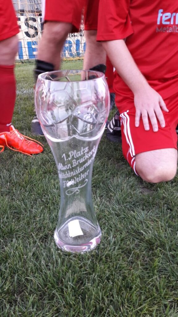 Am Samstag den 05.08.2017 sind wir der Einladung des FC Weiher zum alljährlichen AH-Turnier gefolgt. Mit 10 Mann konnten wir auch dieses Jahr eine konkurrenzfähige Truppe zusammenstellen.  Nur im ersten Spiel mussten wir uns gegen Kronau mit einem 1:1 zufrieden geben. In einem insgesamt sehr gut besetzten Turnier mit wenig Toren gab es danach es nur noch Siege (FV Hambrücken 1:0, FV Dudenhofen 3:1, FC Forst 1:0, FC Weiher 1:0, TSV Stettfeld 2:0). Am Ende haben wir uns mit 16 Punkten und 9:2 Toren den 1. Platz gesichert. Insgesamt eine sehr gute und disziplinierte Mannschaftsleistung. Auch die anschließende Siegesfeier verlief ohne Zwischenfälle, so dass wir auch hier auf eine souveräne Leistung zurückblicken können.